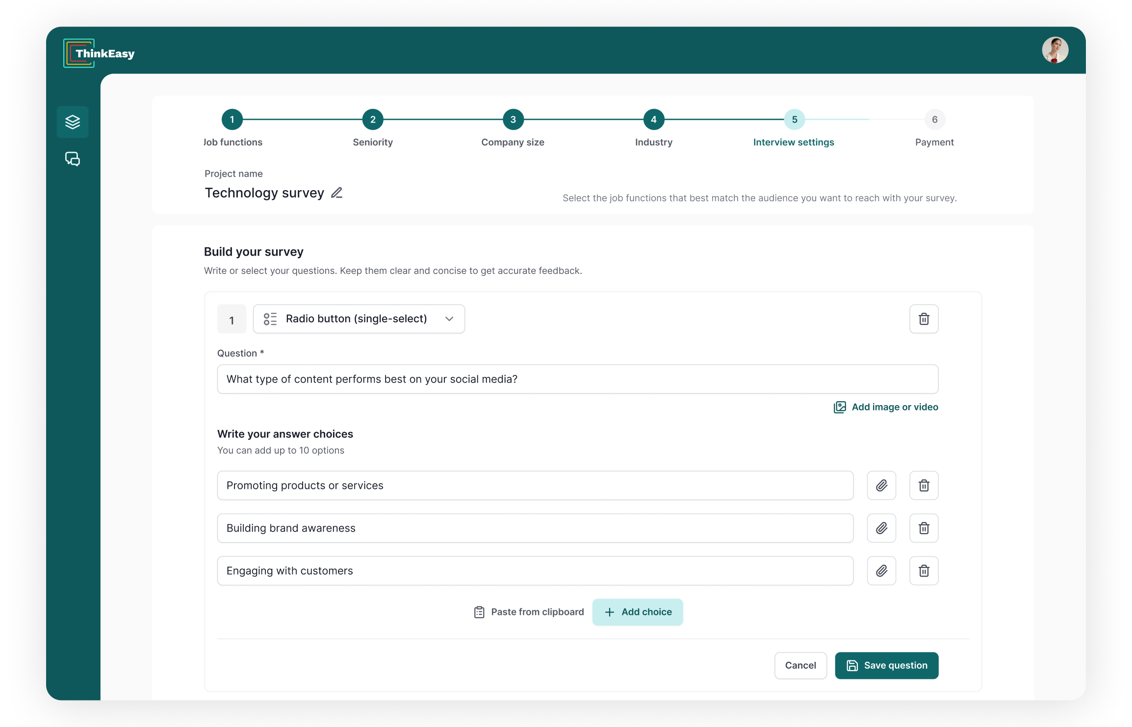 There are no commitments with the ThinkEasy platform; simply use it as needed and pay as you go. Plus, with a range of solutions, it’s just as easy to ask 1 or 2 questions to your ICP as it is to ask 10 or more. You choose what best meets your needs.